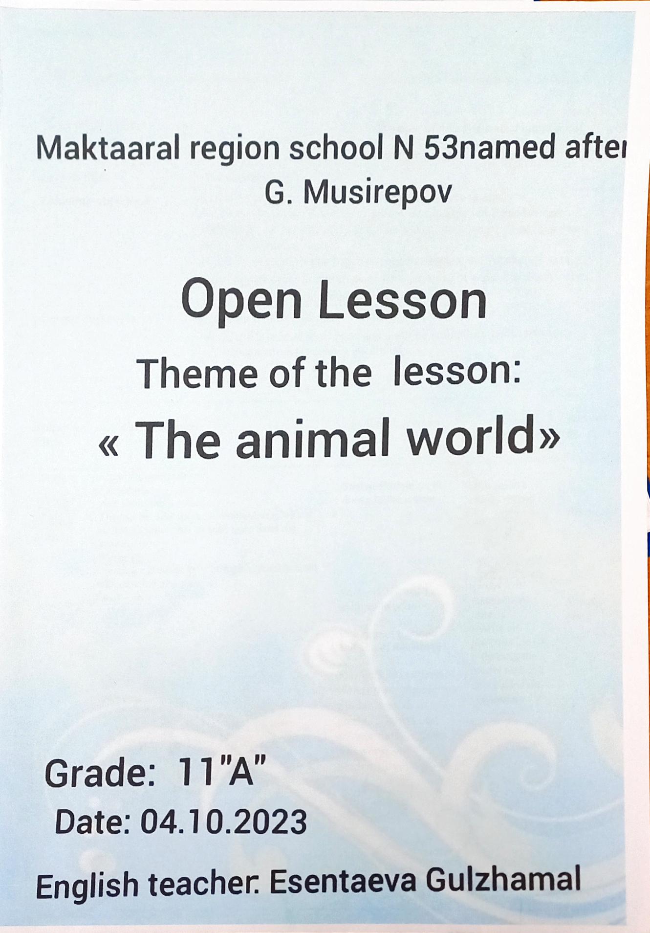 04 октябрь 2023 0 1 2 3 4 5 Ағылшын тілі пәні мұғалімі Есентаева Гулжамол Куралбоевна 11"A" сынып "The animal world"