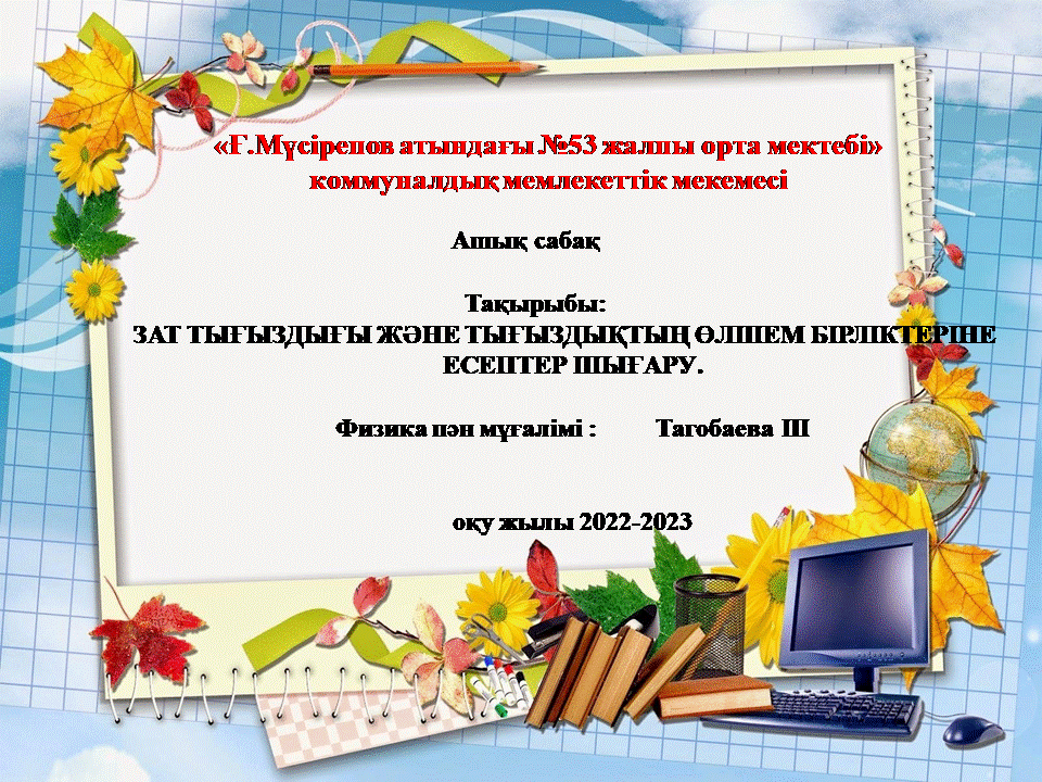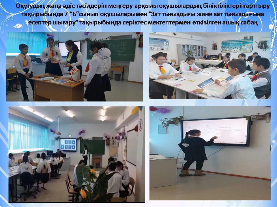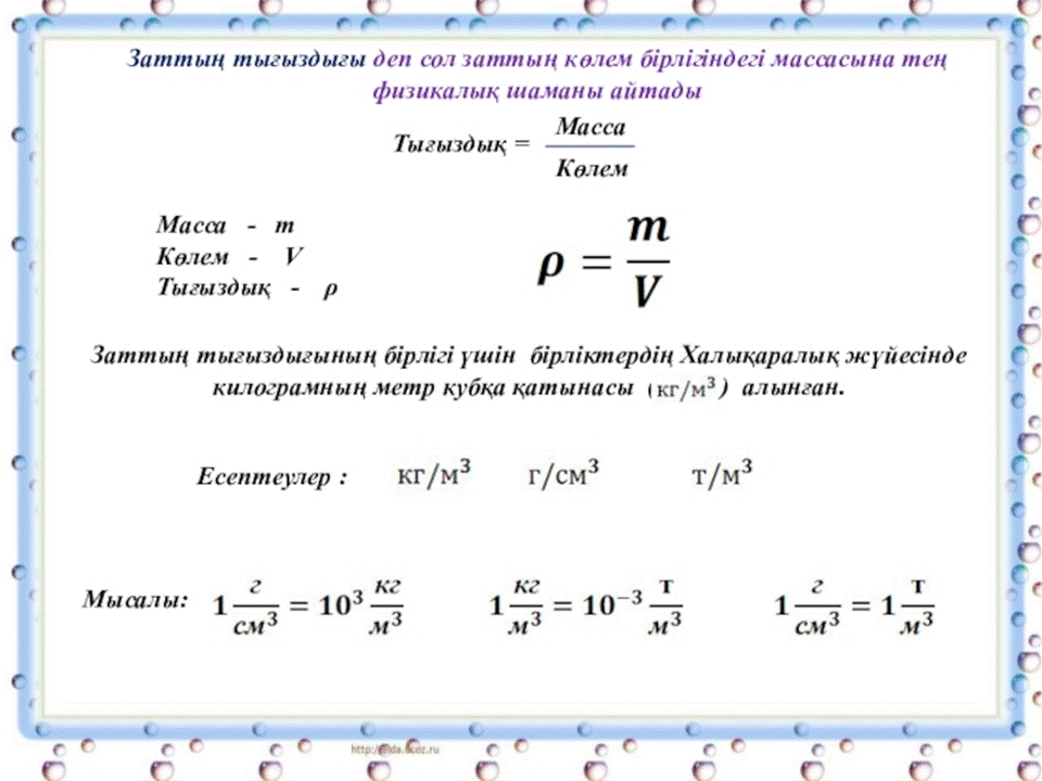 7 Б сынып "Зат тығыздығы және зат тығыздығына есептер шығару" » "Ғ.Мүсірепов атындағы №53 ЖББМ" КММ