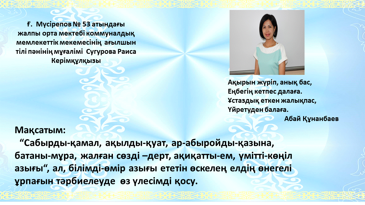 01 февраль 2024 0 1 2 3 4 5 Ағылшын тілі пәні бірлестігі Ашық сабақ Сугурова Райса 2021-2022 ж. 2022-2023 ж. 2023-2024 ж.