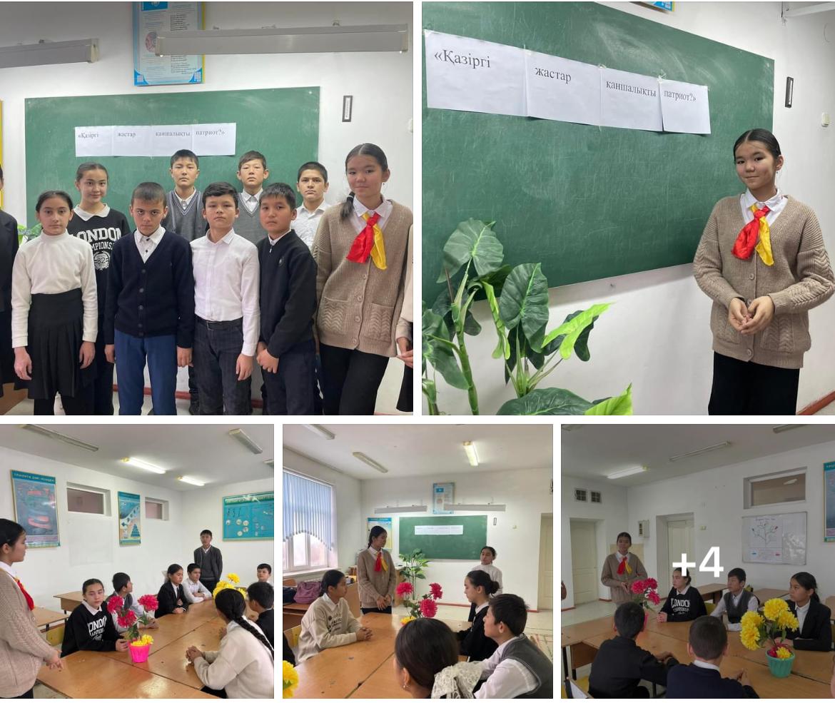 “Қазіргі жастар қаншалықты патриот?” атты тақырыпта дөңгелек үстел өткізіп,жұмыс жүргізу тапсырмасы тапсырылған болатын.Оқушылар жақсы деңгейде атсалысты.