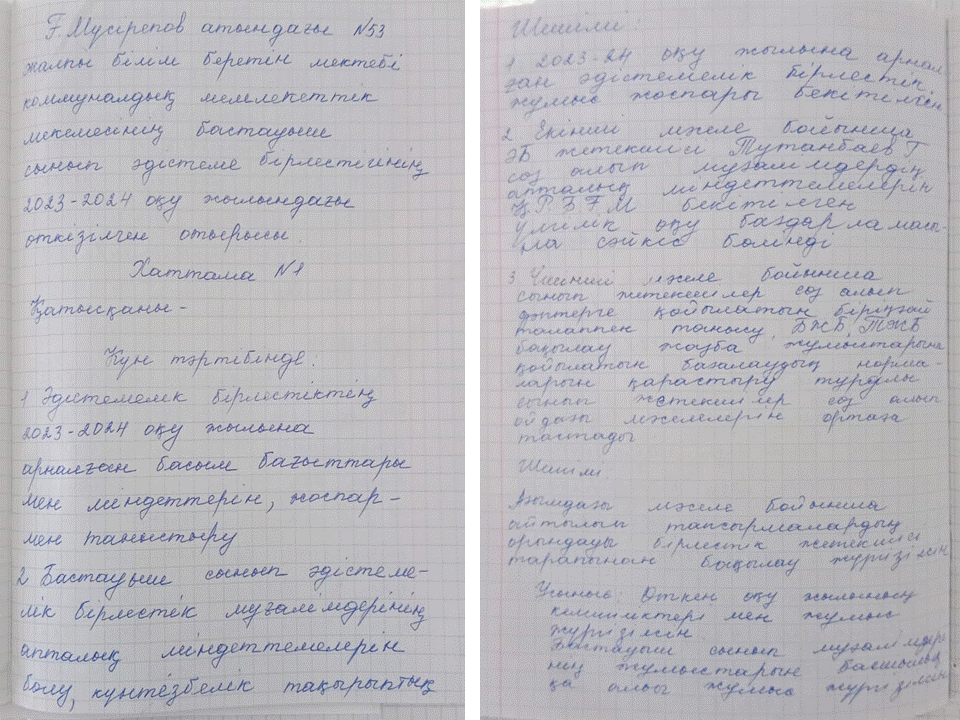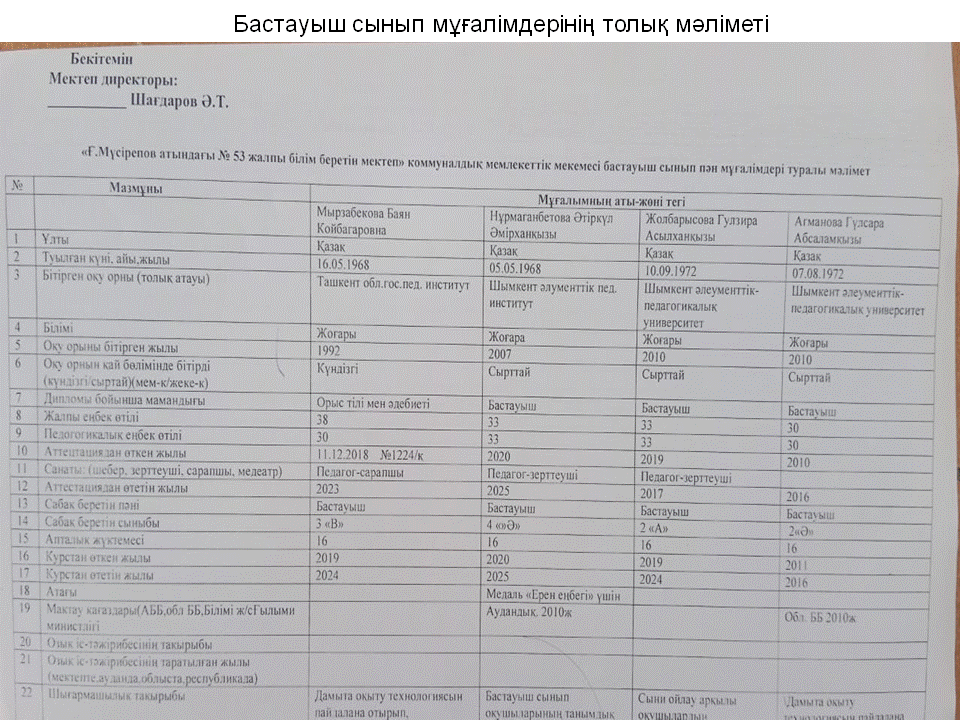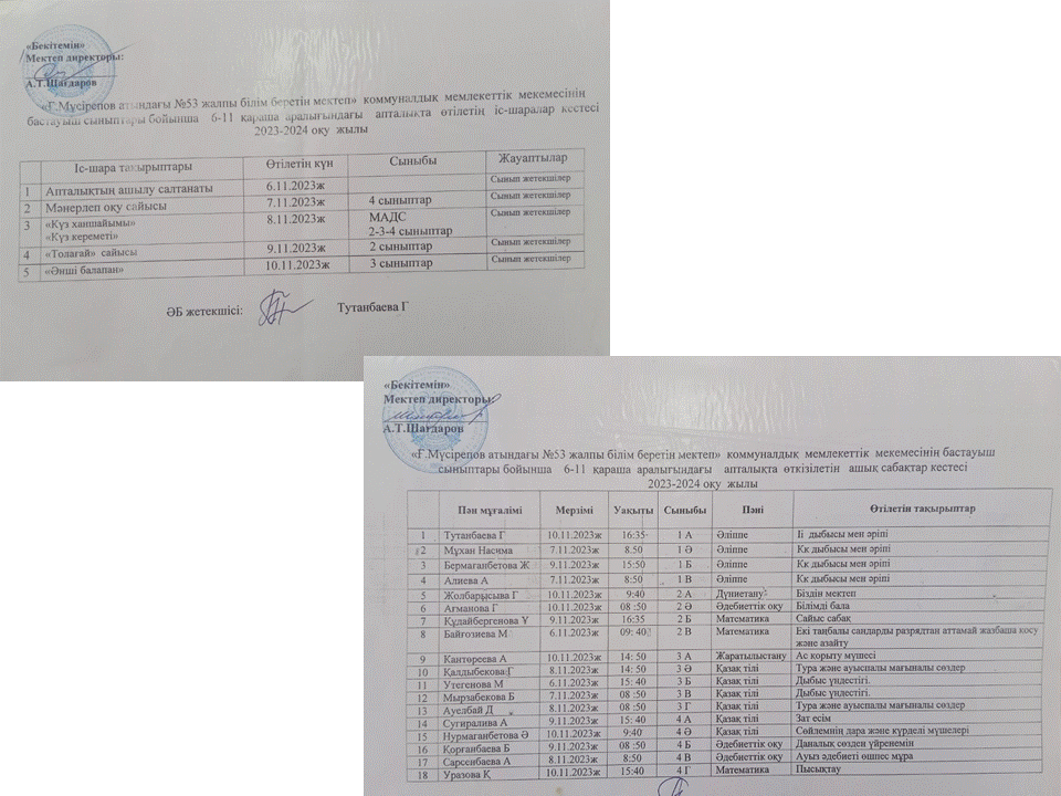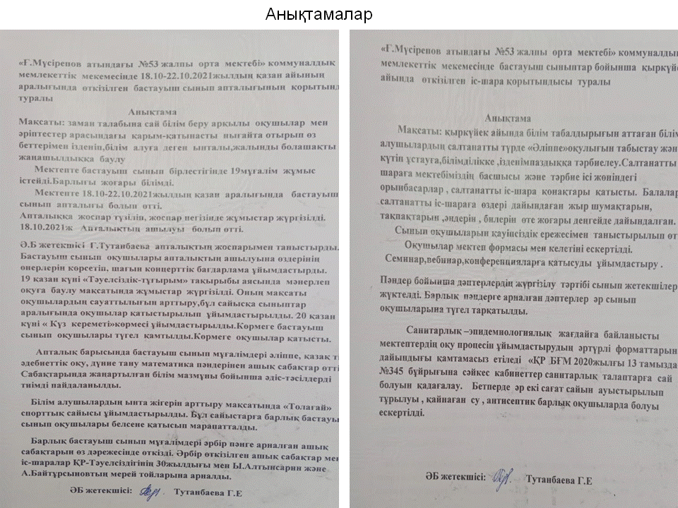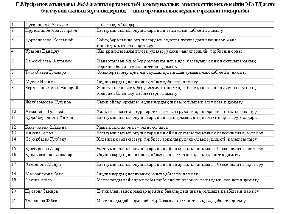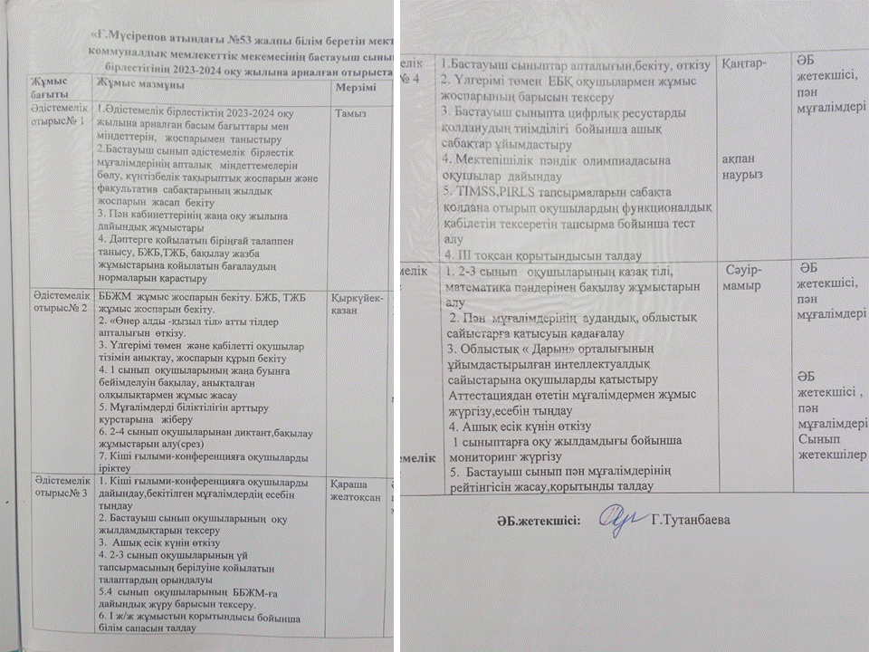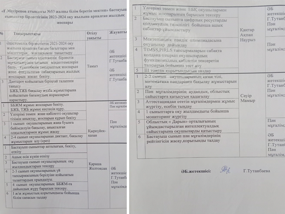 Бастауыш сынып жұмыс жоспары » "Ғ.Мүсірепов атындағы №53 ЖББМ" КММ