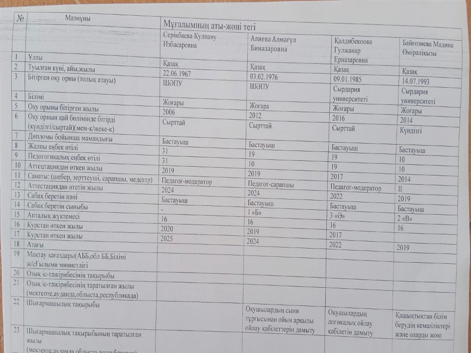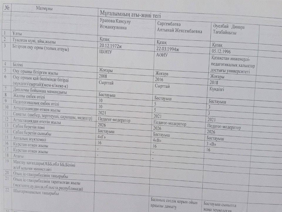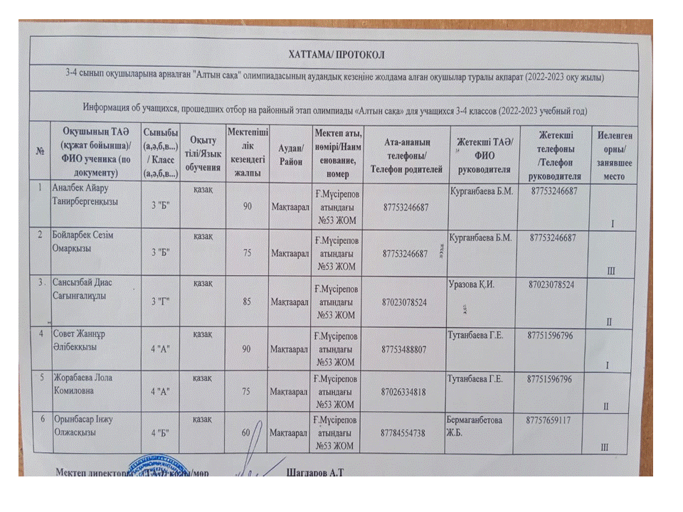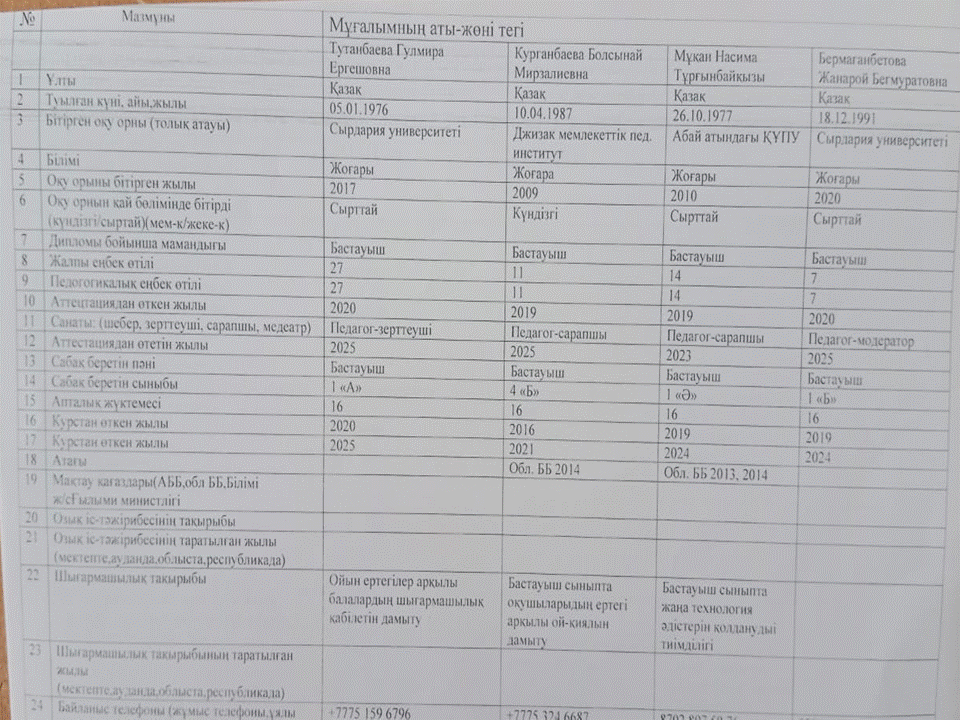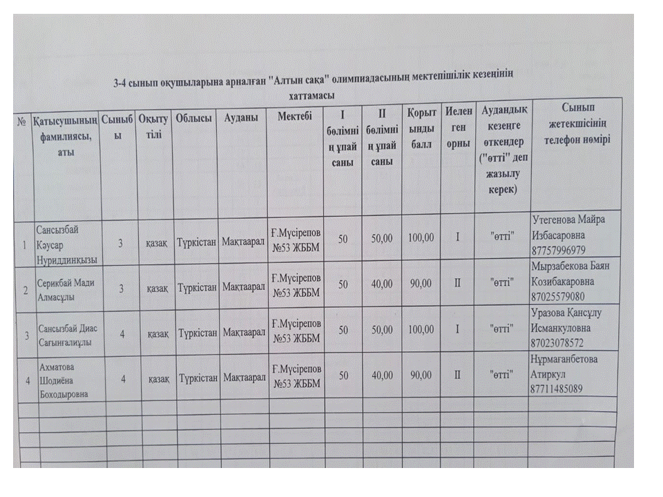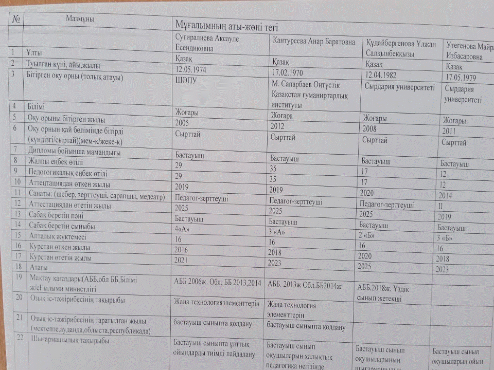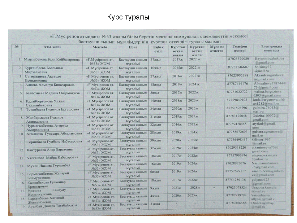 Бастауыш сынып жұмыс жоспары » "Ғ.Мүсірепов атындағы №53 ЖББМ" КММ