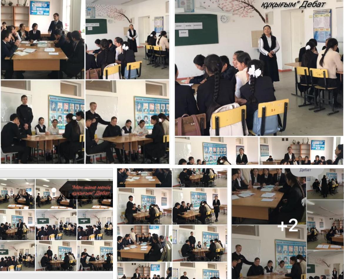 “Мен және менің құқығым” тақырыбында 9 “А”, “Б” сынып оқушылар арасында қазақ тілі пәнінің мұғалімі Шайменова Айсұлу Дебат өткізді