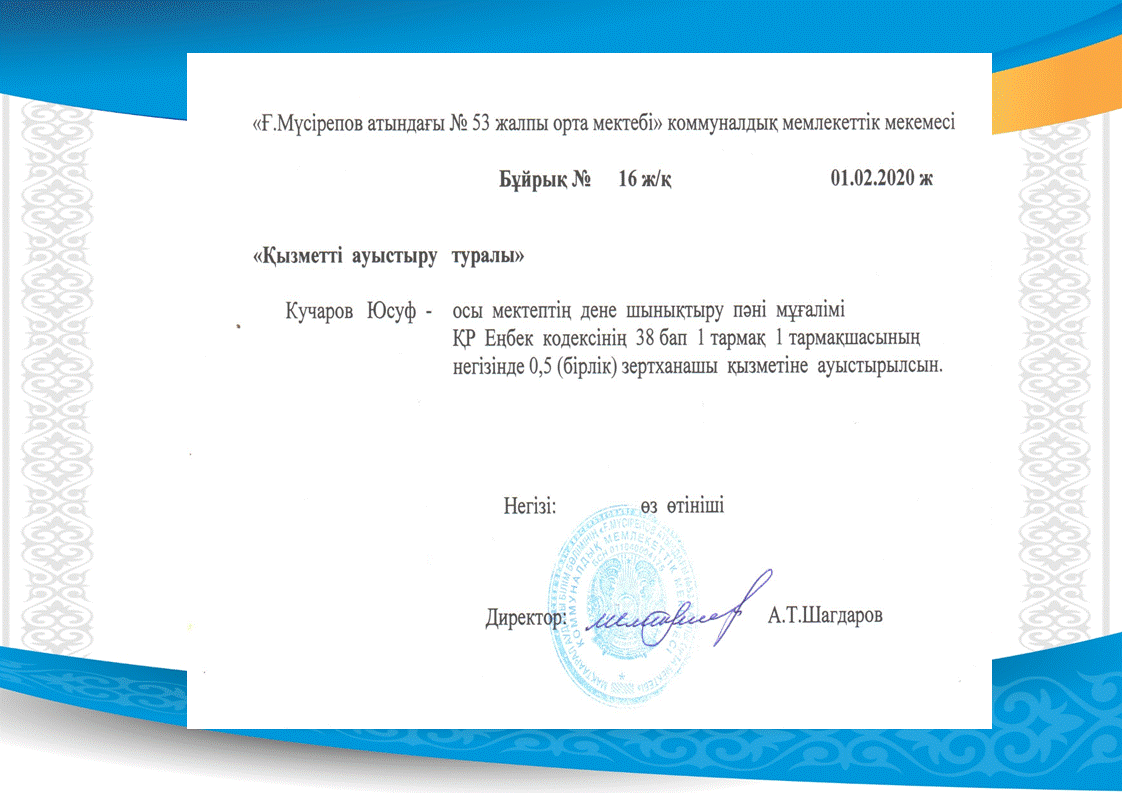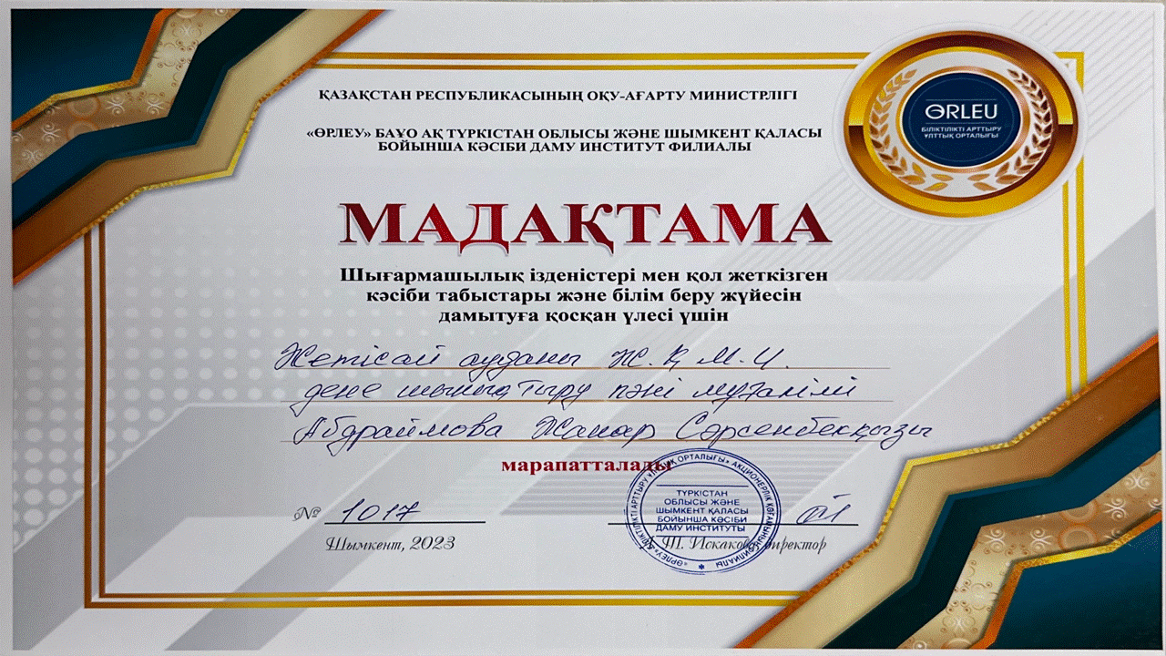 Қосымша білім беру педагогтарының портфолиосы » "Ғ.Мүсірепов атындағы №53 ЖББМ" КММ