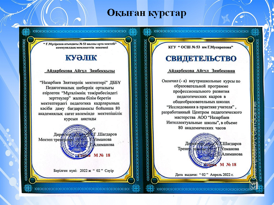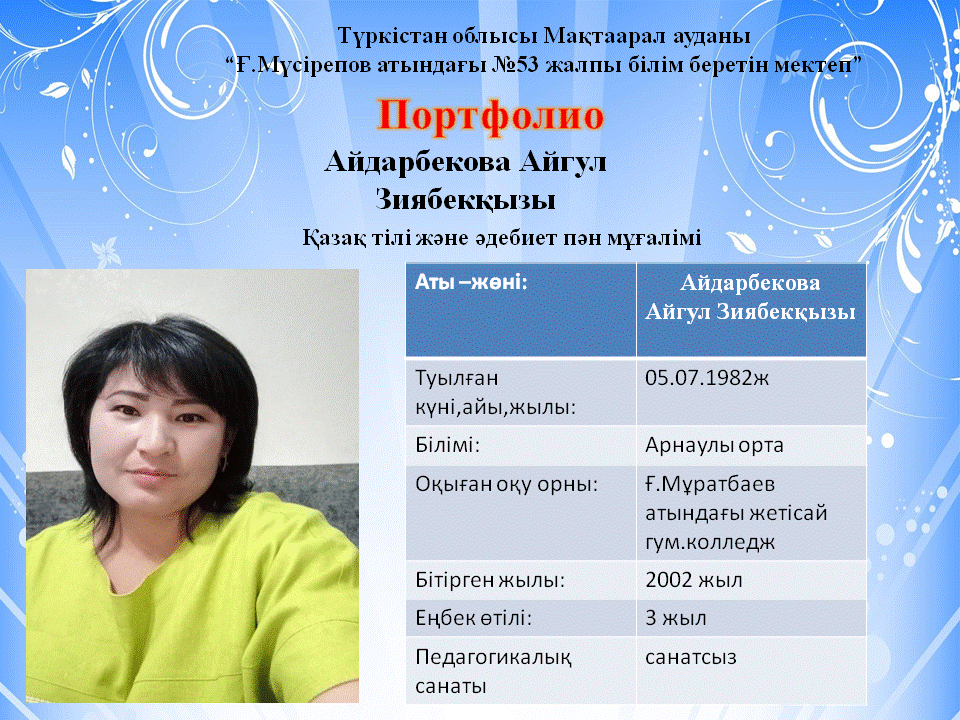 Қазақ тілі мен әдебиеті пәні мұғалімдері портфолиосы » "Ғ.Мүсірепов атындағы №53 ЖББМ" КММ