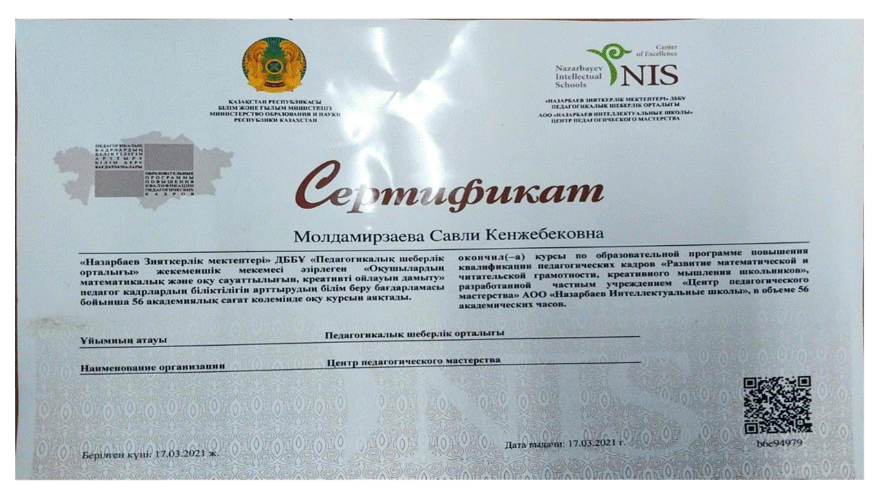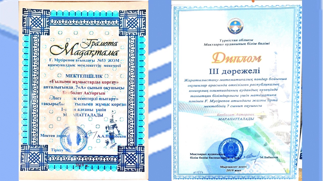 Математика пәні бірлестігі » "Ғ.Мүсірепов атындағы №53 ЖББМ" КММ