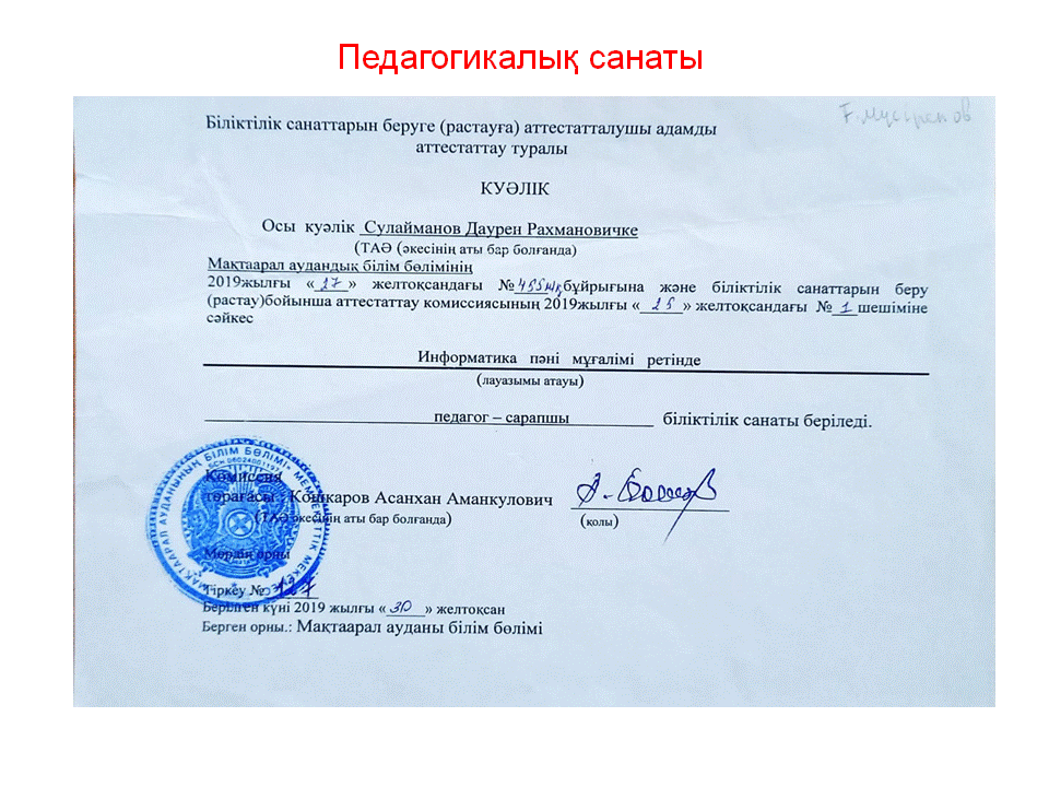 Мақтарал ауданы білім бөлімінің