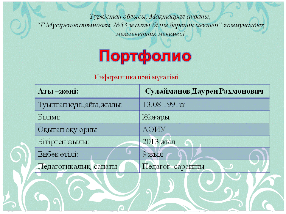 » » » Информатика пәні бірлестігі портфолиосы