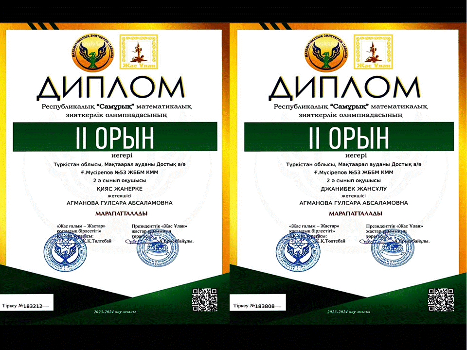 Оқушылар жетістігі » "Ғ.Мүсірепов атындағы №53 ЖББМ" КММ