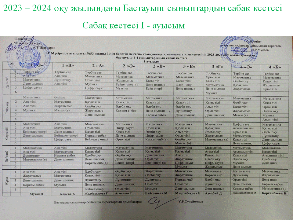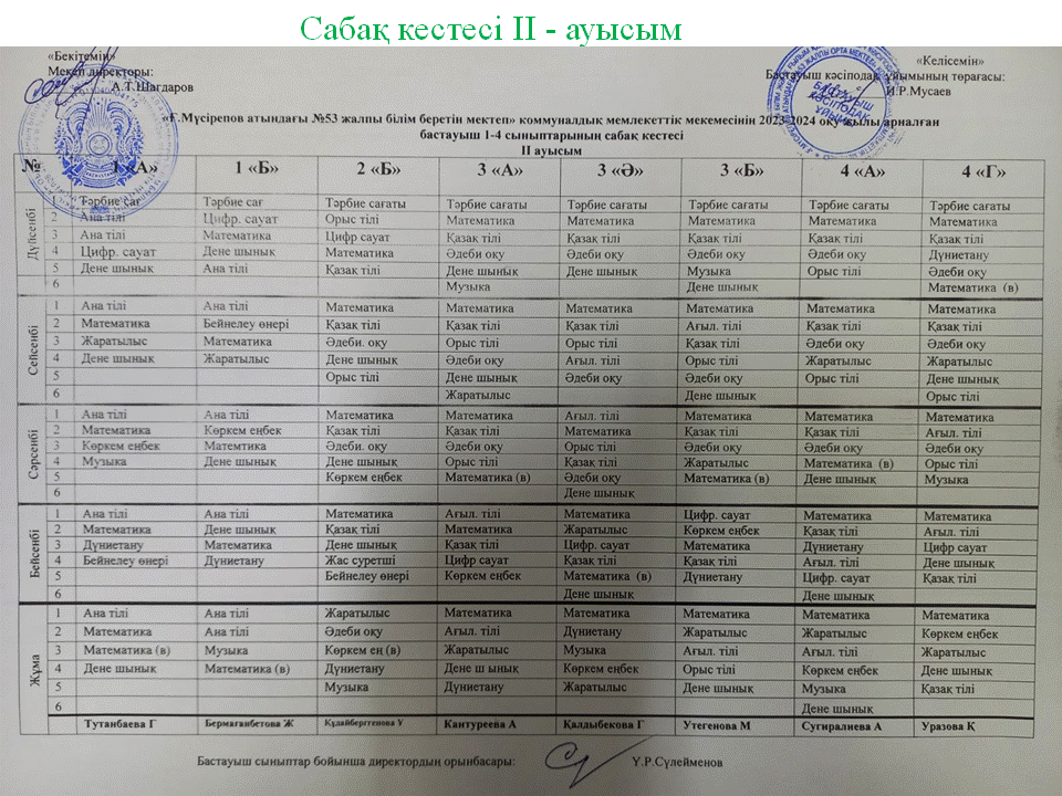 Бастауыш сыныптардың сабақ кестесі » "Ғ.Мүсірепов атындағы №53 ЖББМ" КММ